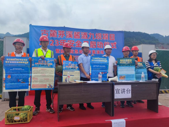 6月8日下午,古藺茅溪醬酒九壩項目施工現(xiàn)場開展2023年安全生產(chǎn)月啟動儀式暨防火應(yīng)急處置方案演練活動,活動共計100人參與,40人參演,200余人觀摩,活動得到建設(shè)單位的一致肯定,并獲得安全文明施工加分。